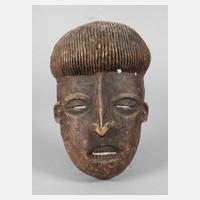 Westafrika, Mitte 20. Jh., der Volksgruppe der Dan zugeordnet, Holz beschnitzt und farbig gefasst, Haarschmuck verziert von Kaurischnecken, H 40 cm.