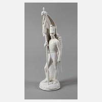 datiert (1)852, geprägte Bienenkorbmarke, weiß glasiert, stehender Soldat mit Fahne und Marschgepäck, fachgerecht restauriert, H 25,5 cm.