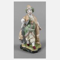Entwurf Johann Peter Melchior um 1770, Ausführung Fasold & Stauch in Bock-Wallendorf 1903–1972, unterglasurblaue Radmarke mit Kurhut, naturalistische Ausformung mit polychromer Bemalung und Goldstaffage, auf unregelmäßigem Grassockel stehender Mann in orientalischem Kostüm, guter Zustand, H 10,5 cm.