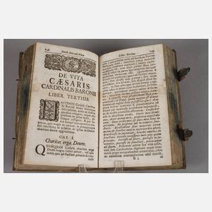Cardinalis Presbyteri [...] Auctore Hieron. Barnabeo [...] cui accedunt praeter copiosum indicem Elogia baronio ab illustribus sanctitate et doctrina viris attributa, operâ Gregorii Fritz, Wien 1718, Format Kl. 8°, 10 Blatt, 274 S. und 13 Blatt, ein Kupferfrontispiz, Cesare Baronio zeigend, Pergamenteinband, Rücken beschriftet, Schließen intakt, altersgemäß schöner Zustand.