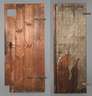 aus einem Bauernhof, 19. Jh., einfache Bretttüren aus Nadelholz, beide mit Schloss und Schlüssel, Alters- und Gebrauchsspuren, Maße 184 x 85 cm und 187 x 71 cm.