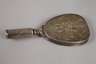 Mitte 20. Jh., gestempelt Made in Italy 800, weitere Stempel Florenz, als Puderdose mit klappbarem Deckel, dieser beidseitig mit facettierten Spiegeln, herausnehmbare Quaste, alles floral graviert, im Griff ein integrierter Lippenstifthalter, besetzt mit einem Lapislazulicabochon, ohne Puder, Gebrauchsspuren, L 14 cm.