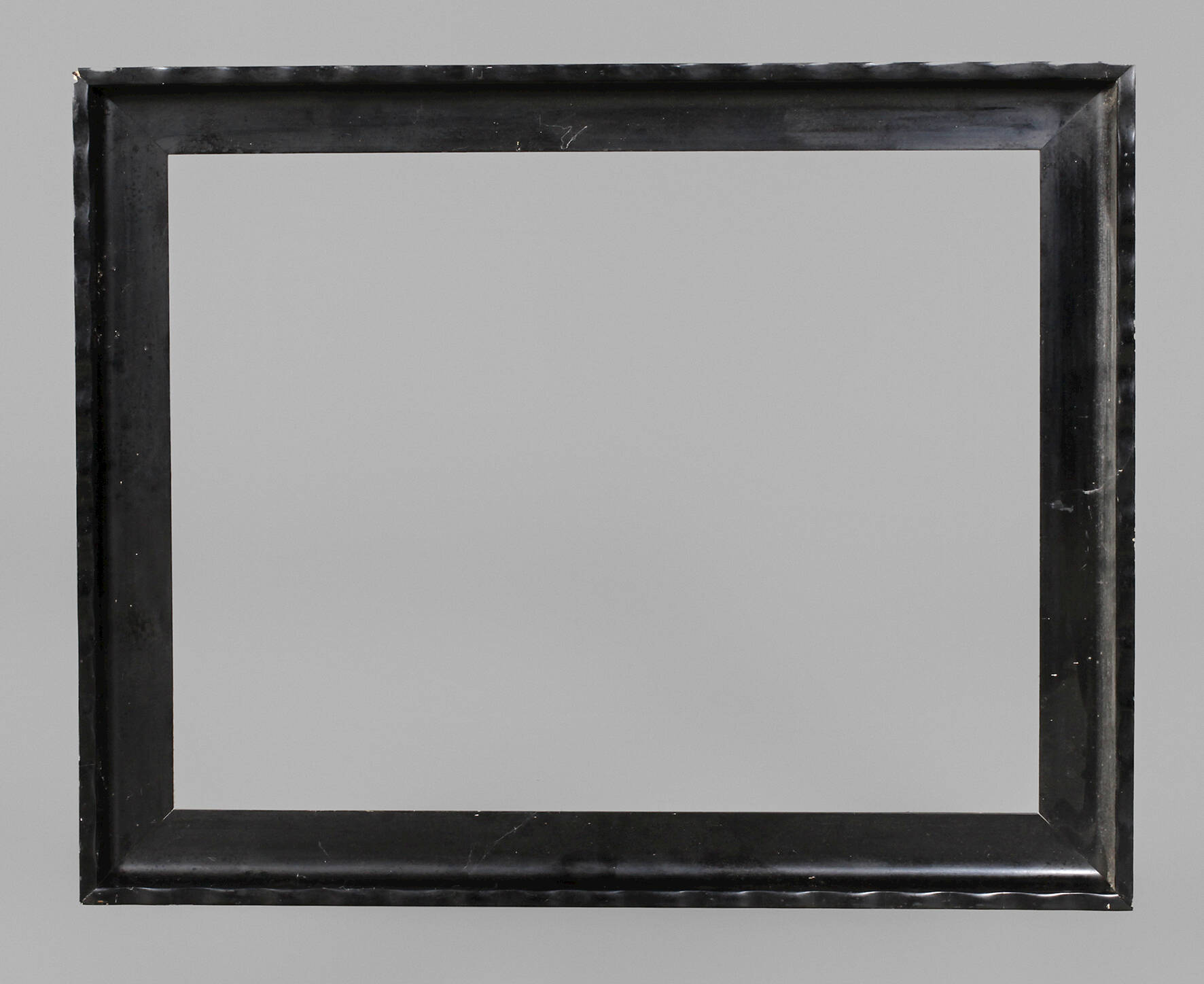 2. Hälfte 19. Jh., ca. 8 cm breite, tief gekehlte Leiste, Gehrungen über Eck gearbeitet, gewellter Rand, innen Reste einer goldenen Wellenleiste, restaurierungsbedürftig, Falzmaße 60 x 62 cm.