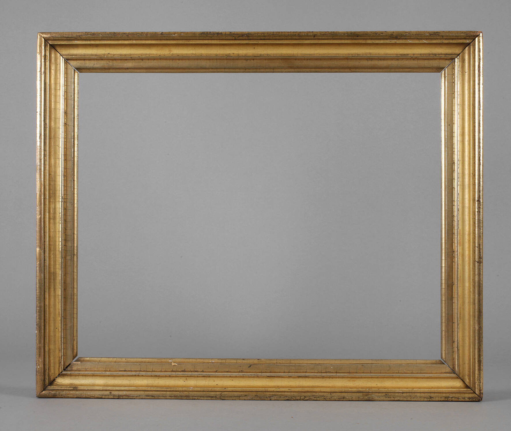 um 1870, Rahmen aus ca. 6 cm breiter, steigend profilierter, versilberter und schellackpatinierter Holzleiste, Gehrungen geschnitten, geringe Altersspuren, Falzmaße ca. 57,5 x 49,5 cm.