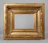 um 1880, Rahmen aus ca. 11 cm breiter, zur Leistenmitte steigend profilierter, mit Lorbeerstab und Pfeifenschnitt sowie Eckkartuschen verzierter, vergoldeter Holzleiste, Gehrungen über Eck gearbeitet, Erhaltungsmängel, neuzeitlich hinzugefügtes goldenes Inlay, Falzmaße ca. 29 x 23,5 cm.