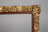 um 1900, ungewöhnlicher Rahmen aus ca. 4 cm breiter schlicht profilierter Holzleiste mit feinem Perlstabinlay und aufgesetztem Ornamentband mit Veilchen gestuckter teilvergoldeter, teils rotbraun gelackter Holzleiste, Gehrungen mit vergoldeten Metalleckapplikationen, geringe Altersspuren, Falzmaße 53,5 x 25 cm.