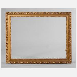 1. Hälfte 20. Jh., Rahmen aus 5 cm breiter, nach außen steigend profilierter, gestuckter und goldbronzierter Holzleiste, Gehrungen geschnitten, minimale Altersspuren, Falzmaße ca. 40 x 51 cm.