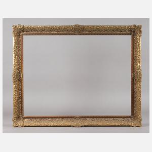 um 1990, Rahmen aus ca. 7 cm breiter, steigend profilierter, ornamental gestuckter, mit Eck- und Mittelkartuschen verzierter, vergoldeter Holzleiste, geringe Altersspuren, passend zu nachfolgender Position, Falzmaße ca. 60,5 x 80,5 cm.