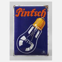 um 1910, mit unleserlichem Herstellervermerk, hochrechteckiges, planes Schild, mehrfarbig emailliert, mit Firmenschriftzug und Signet, vier originale Bohrungen, stärkere Substanzverluste, Z 3, Maße 44 x 32 cm.