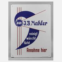 um 1910, ohne Hersteller, langrechteckiges, gebauchtes Schild, vierfarbig emailliert, teils reliefiert, mit schlichtem Firmenschriftzug, vier originale Bohrungen, Substanzverluste, Z 2–3, Maße 36 x 69 cm.