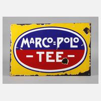 um 1920, ohne Hersteller, planes, langrechteckiges Schild, vierfarbig emailliert, mit schlichtem Werbeemblem, vier originale Bohrungen, Emailverluste, Z 2–3, Maße 38 x 56 cm.