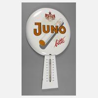1920er Jahre, ohne Hersteller, leicht gewölbtes, rundes Schild, mehrfarbig emailliert, mit montiertem Thermometer mit Skala in Celsius, gute Erhaltung mit leichten Emailverlusten im Randbereich, Z 1, H 95 cm.