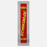 1930er Jahre, gemarkt Ferro-Email C. Robert Dold, hochrechteckiges, flaches, zart geprägtes Schild, dreifarbig emailliert, mit Firmenlogo, in eiserne Leiste gefasst, stärkere Erhaltungsmängel, Z 3-, Maße 120 x 58 cm.