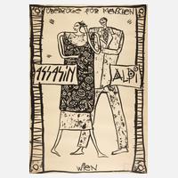 im oberen Bereich bezeichnet "Überzüge für Menschen", Siebdruck, um 1980, unten rechts dreimal unleserlich handsigniert, leichte Randmängel und gering braunfleckig, gerollt, Maße ca. 99 x 70 cm.
