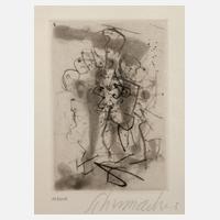 informelle Komposition, Radierung, um 1970, unter der Darstellung in Blei signiert "Schumacher" und links nummeriert "123/150", hinter Glas gerahmt, Darstellungsmaße ca. 10,6 x 7,5 cm, Falzmaße ca. 27 x 19,3 cm. Künstlerinfo: dt. Maler und Graphiker (1912 Hagen bis 1999 San José/Ibiza), 1931–34 Studium der Werbegrafik an der Handwerker- und Kunstgewerbeschule Dortmund, 1935–39 als freischaffender Maler tätig, nach der Machtergreifung der Nationalsozialisten als „Kulturbolschewist“ degradiert und von der Reichskammer der bildenden Künste ausgeschlossen, während des Kriegs als Technischer Zeichner tätig, 1947 erste Einzelausstellung in Wuppertal, 1958–60 Professur an der Hochschule der Bildenden Künste in Hamburg, 1959 Teilnahme an der documenta II in Kassel, 1961 Teilnahme an der 29. Biennale von Venedig und Verleihung des Guggenheim Award, 1966–77 Professor an der Staatlichen Akademie der bildenden Künste Karlsruhe, weltweit zahlreiche Ausstellungen, Schumacher zählt zu den bedeutendsten Künstler der westdeutschen Nachkriegsmoderne, Quelle: Wikipedia und Internet.