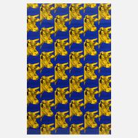 sich wiederholende Portraits einer Kuh in Gelb vor blauem Grund, Farbserigraphie, an der rechten Blattkante Copyrightvermerk und datiert "1996", hinter Glas gerahmt, Blattmaße ca. 89,5 x 60 cm. Künstlerinfo: eigentlich Andrew Warhola, bedeut. us-amerik. Maler, Graphiker, Designer, Filmemacher und Verleger (1928 Pittsburgh bis 1987 New York City), Mitbegründer und zentrale Figur der amerik. Pop Art, stud. 1945–49 Gebrauchsgraphik am Carnegie Institute of Technology in Pittsburgh, anschließend Umzug nach New York und hier als freischaffender Künstler tätig, Quelle: Internet.