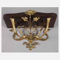 um 1900, Messing feuervergoldet, mit aufgelegter geschwungener Platte aus Nussbaum, verziert von Schleifenornamenten und Floralmotiv, min. Altersspuren, Maße 14 x 29 x 18 cm.