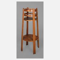 um 1920, Buche massiv, braun gebeizt, sich konisch verjüngendes Gestell mit zwei Platten, die oberen zwei Ringe aus gebogenem Holz, Oberfläche mit Altersspuren, H 89 cm, D 36 cm.
