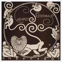 Werbehandzettel/Probedruck des Cabarets Fledermaus, an einem Reif turnende Affen, im oberen Bereich Schriftzug „Cabaret Fledermaus“ und im unteren Bereich „2. Heft. 1907“, Lithographie, im Druck ligiertes Monogramm „MJ“, leicht gebräunt, Darstellungsmaße ca. 13,8 x 13,5 cm, Blattmaße ca. 21,7 x 14,6 cm. Künstlerinfo: österr. Graphiker (1885 Nikolsburg bis 1915 Höhe Maniloowa bei Lubné), 1901–08 Besuch der Wiener Kunstgewerbeschule bei Carl Otto Czeschka, Alfred Roller, Felician Myrbach und Bertold Löffler, gestaltete für das Cabaret Fledermaus ein Programmheft und ein Plakat, entwarf für die Wiener Werkstätte Bilderfolgen und Postkarten, Quelle: Wikipedia.