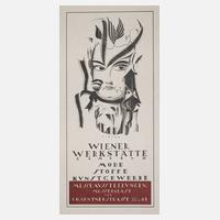 um 1910, Entwurf Dagobert Peche, signiert, Farblithografie auf Papier, Werbemittel für Messeausstellung Stoffe, Mode, Kunsthandwerk, min. gegilbt, Maße 29,5 x 21 cm.