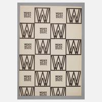 Entwurf Josef Hoffmann und Koloman Moser um 1905, ein Blatt Seidenpapier mit monochromem Dekor, Monogrammsignet – WW – Wiener Werkstätte, gegilbt, Maße 29 x 21 cm. Quelle: Das Schöne und der Alltag. Die Anfänge des modernen Designs 1900–1914, Hrsg. Deutsches Museum für Kunst in Handel und Gewerbe, 1997, S. 212, Abb. AK 158.