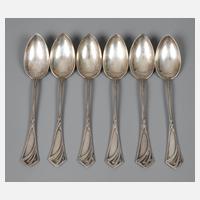 Entwurf Hugo Leven um 1900, Musternr. 25600, Herstellermarke Koch & Bergfeld Bremen, gemarkt Halbmond, Krone, 800 sowie teilweise Vertriebsstempel Harry Lohde, vier Paar mit gravierten Klingen und Laffen, darauf Wellenbänder und stilisierter Floraldekor, zwei mit Besitzermonogramm WH, Alters- und Gebrauchsspuren, L max. 22 cm, G total ca. 484 g.
