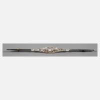um 1910, Weiß- und Gelbgold geprüft 585, Mittelteil durchbrochen gearbeitet und besetzt mit einem Brillanten von ca. 0,1 ct in Zargenfassung, L ca. 67 mm, G ca. 3,7 g.