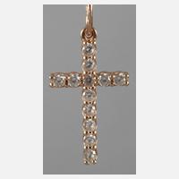 neuzeitlich, Roségold gestempelt 585 und weitere Punzen, besetzt mit zwölf weißen facettierten Schmucksteinen, Anhängermaße ca. 27 x 12 mm, G ca. 1 g.