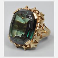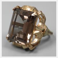 um 1960, Gelbgold gestempelt 333, ca. 24 mm hoher Ringkopf, besetzt mit einem facettierten Rauchquarz im Treppenschliff, Tragespuren, RW 17 mm, G ca. 8,1 g.