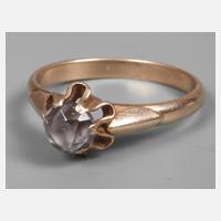 2. Hälfte 20. Jh., Roségold gestempelt 583 und Sowjetstern, besetzt mit einem runden facettierten Alexandrit, in Krappenfassung, leichte Tragespuren, RW 19 mm, G ca. 3,4 g.