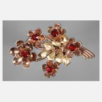 um 1950, Silber gelb- und rotvergoldet, gestempelt Sterling, in Form eines Zweigs mit Blüten, besetzt mit fünf facettierten roten Glassteinen, leichte Altersspuren, Maße ca. 71 x 46 mm, G ca. 17,4 g.