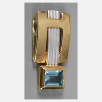 neuzeitlich, Weiß- und Gelbgold gestempelt 585, durchbrochen und teils satiniert gearbeitet, im unteren Bereich besetzt mit einem facettierten Blautopas, Maße Anhänger 30 x 15 mm, G ca. 5,7 g.