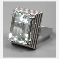 neuzeitlich, Weißgold geprüft 750/1000, besetzt mit einem Aquamarin von ca. 12 x 10 mm in Krappenfassung, RW 19,5 mm, G ca. 4,8 g.
