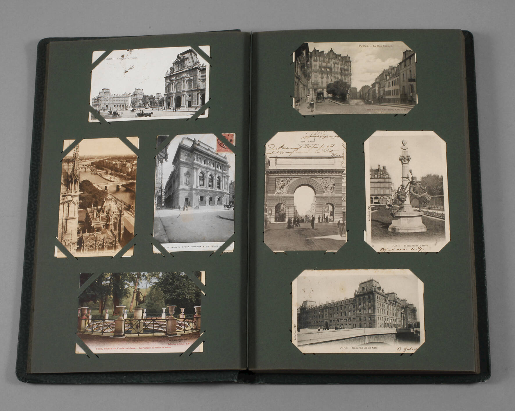 um 1910, ca. 300 Ansichtskarten der Stadt Paris, in grünem Album, gute Erhaltung, H ca. 42 cm.