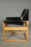 1970er Jahre, Buche massiv, verleimt und verschraubt, Bespannung aus schwarz gefärbtem Schweinsleder, normale Alters- und Gebrauchsspuren, Maße 80 x 61 x 61 cm.
