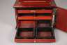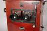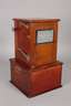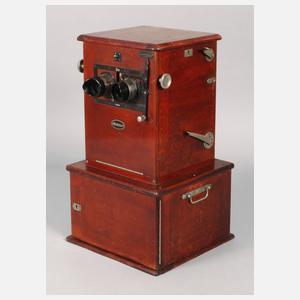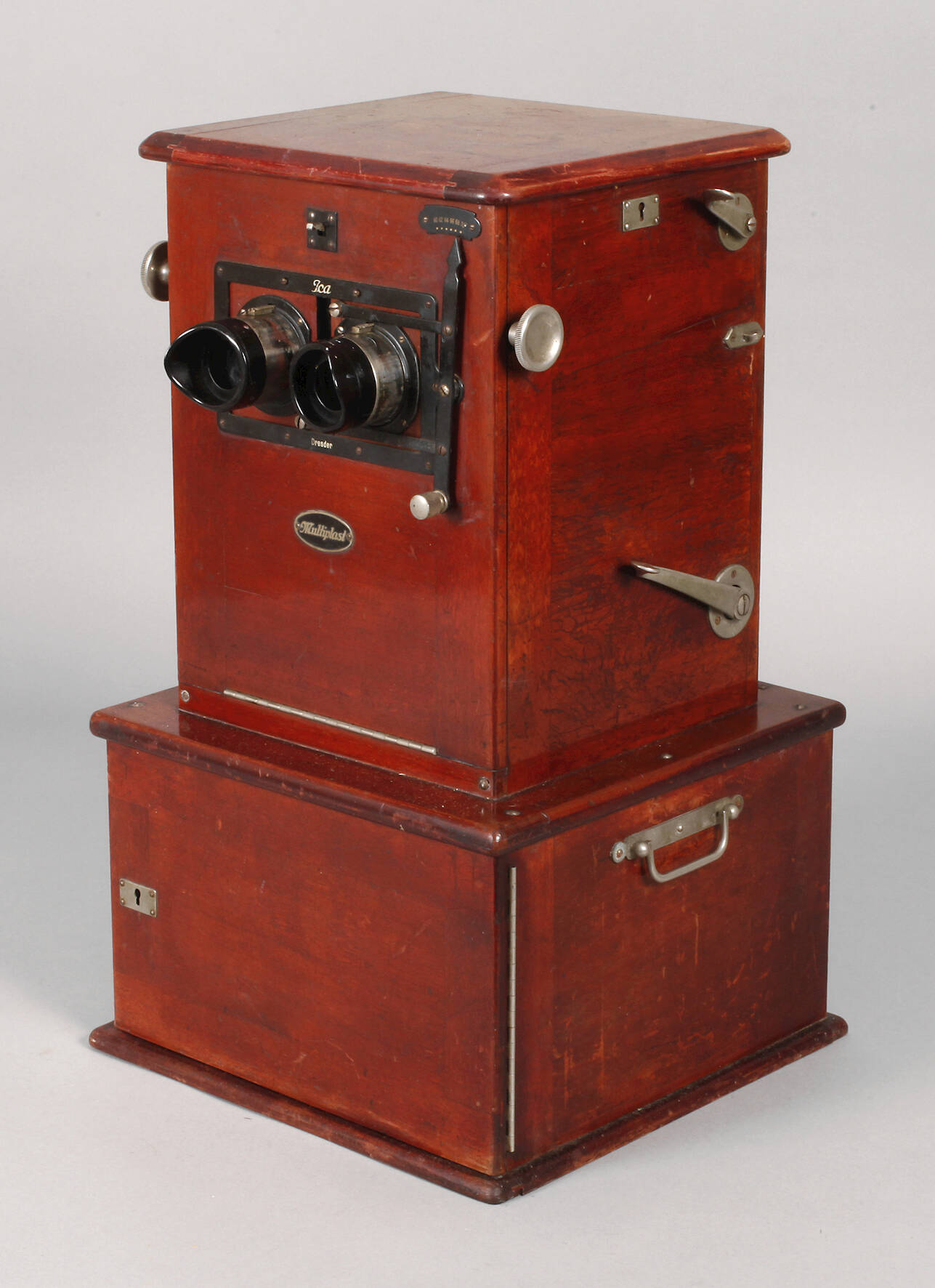 um 1910, gemarkt Ica Dresden Multiplast, auf Mahagoni gebeiztes Gehäuse mit Metallmontierungen, im unteren Teil drei Auszüge für Bildträger, funktionstüchtig, Altersspuren, Maße 50 x 30 x 30 cm.
