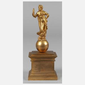Antikenrezeption, wohl Renaissance, um 1650, Bronze feuervergoldet, auf späterem Sockel mit Kugel montiert, sehr fein ziselierte Darstellung der obersten Gottheit der römischen Religion mit Blitzbündel und Adler, H Bronze 8 cm, H ges. 16,5 cm.