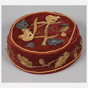 Tönnchen, Albertus-Universität Königsberg, um 1944[?], auf dem Deckel studentische Abzeichen, Tragespuren, D ca. 15 cm.