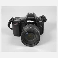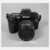 1990er Jahre, gemarkt Modell F 100,, in schwarzem Kunststoffgehäuse, Objektiv AF Nikkor 28–105 mm 1:3,5–4,5, Funktion nicht geprüft, beigegeben originale Bedienungsanleitung.