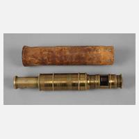 19. Jh., gemarkt Levebours Paris L. du M ... 11, zylindrischer Korpus aus Mahagoni mit Messingmontierungen und kurzem Auszug, funktionstüchtig, Alters- und Gebrauchsspuren, L 115 cm.