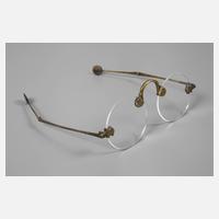 China, Anfang 20. Jh., zartes Messinggestell, klappbare Bügel, geschliffene Rundgläser, Alters- und Gebrauchsspuren, L. 12,5 cm.