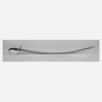 um 1900, leicht gekrümmte breite Klinge (31 mm) mit beidseitig drei Kehlen auf 2/3 der Länge, Hersteller W. S. mit Fischfrau, Messinggefäß mit Monogramm Nikolaus II., Parierende in Ösenform, Bakelitgriff beschädigt, Griffstück wackelt, hölzerne Scheide mit Messingbeschlägen, gemarkt 1099, die einzelnen Teile verschraubt und gepunzt "A", L Klinge ca. 76,5 cm, Klingenspitze korrodiert und äußerste Spitze abgebrochen.