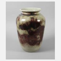 Glasurentwurf Gerda Conitz um 1940, ungemarkt, grauer Scherben mit craquelierter Laufglasur in Ochsenblut über hellgrünem Grund, ovoider Korpus mit kurzem eingezogenen Hals und ausschwingender Mündung, guter Zustand, H 39 cm.