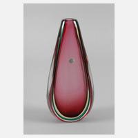 Italien, 1960er Jahre, ungemarkt, mit Klebeetikett "Made in Italy Murano", ovoider Korpus aus klarem Glas, mit grüner Zwischenschicht, innen gelb und rot unterfangen, plangeschliffener Stand, H 25,5 cm.