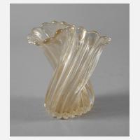 Ausführung Seguso Vetri d'Arte, unsigniert, plangeschliffener Stand, massives farbloses Glas aus zusammengeschmolzenen, mehrfach gedrückten und gedrehten Stäben mit eingeschmolzener zerplatzter Goldfolie (sogenannter Goldflimmer), guter Zustand, H 14,5 cm.
