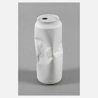 aus der "do not litter" collection, neuzeitlich, grünes studio-linie Kunstreihen-Signet, Ausformung in Biskuitporzellan als zerdrückte Getränkedose, guter Zustand, H 14,5 cm.