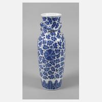 Ende 19. Jh., am Boden gepinselte Vier-Zeichen-Marke, Porzellan in kobaltblauer Unterglasurbemalung, gerippter Korpus mit leicht ausgestelltem Hals und Mündung, daran plastisch gearbeitetes Drachenmotiv, Wandung umlaufend verziert von Blattranken und Blütenmotiven, brandfleckig, min. best., H 32 cm.