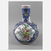 19. Jh., am Boden gepinselte Sechs-Zeichen-Marke, Solifleur mit kugeligem Korpus aus Porzellan in polychromer Emailbemalung, Front mit figürlichen Darstellungen in Gartenlandschaft, etwas berieben, minimal brandfleckig, H 21 cm.