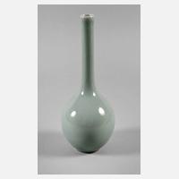 um 1900, am Boden gepinselte bzw. gestempelte Marke, kleine Solifleur mit kugeligem Korpus und schlankem, minimal konisch zulaufendem Hals, in seladonfarbener Craqueléglasur, Hals mit reparierter Bruchstelle, H 26 cm.