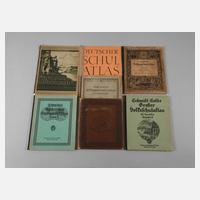 7 Stück, Anfang 20. Jh., darunter: Volksschulatlas von Diercke, Debes Mittlerer Schulatlas, Schmidts Sächsischer Volksschul-Atlas, Der Lebensraum der Obersachsen, unterschiedliche Erhaltungen, unkollationiert.